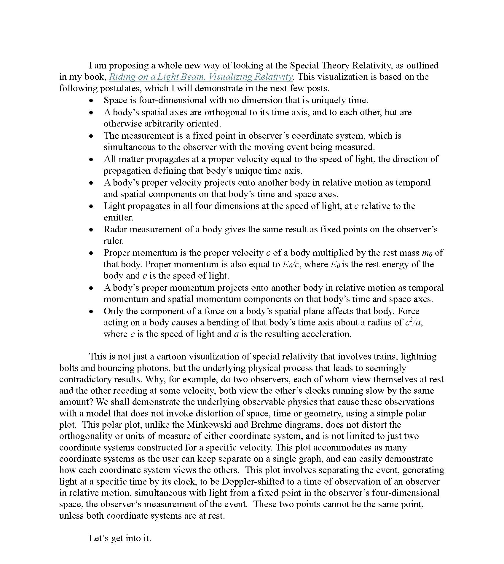 January 26, 2026 A NEW WAY OF LOOKING AT THE THEORY OF SPECIAL RELATIVITY January 26, 2026/ Lewis McIntyre